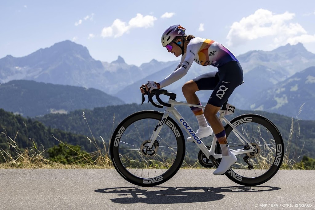 Urska Zigart, de vriendin van Pogacar, grijpt macht in Romandië; Tourwinnaar raapt bidon op langs kant van de weg.