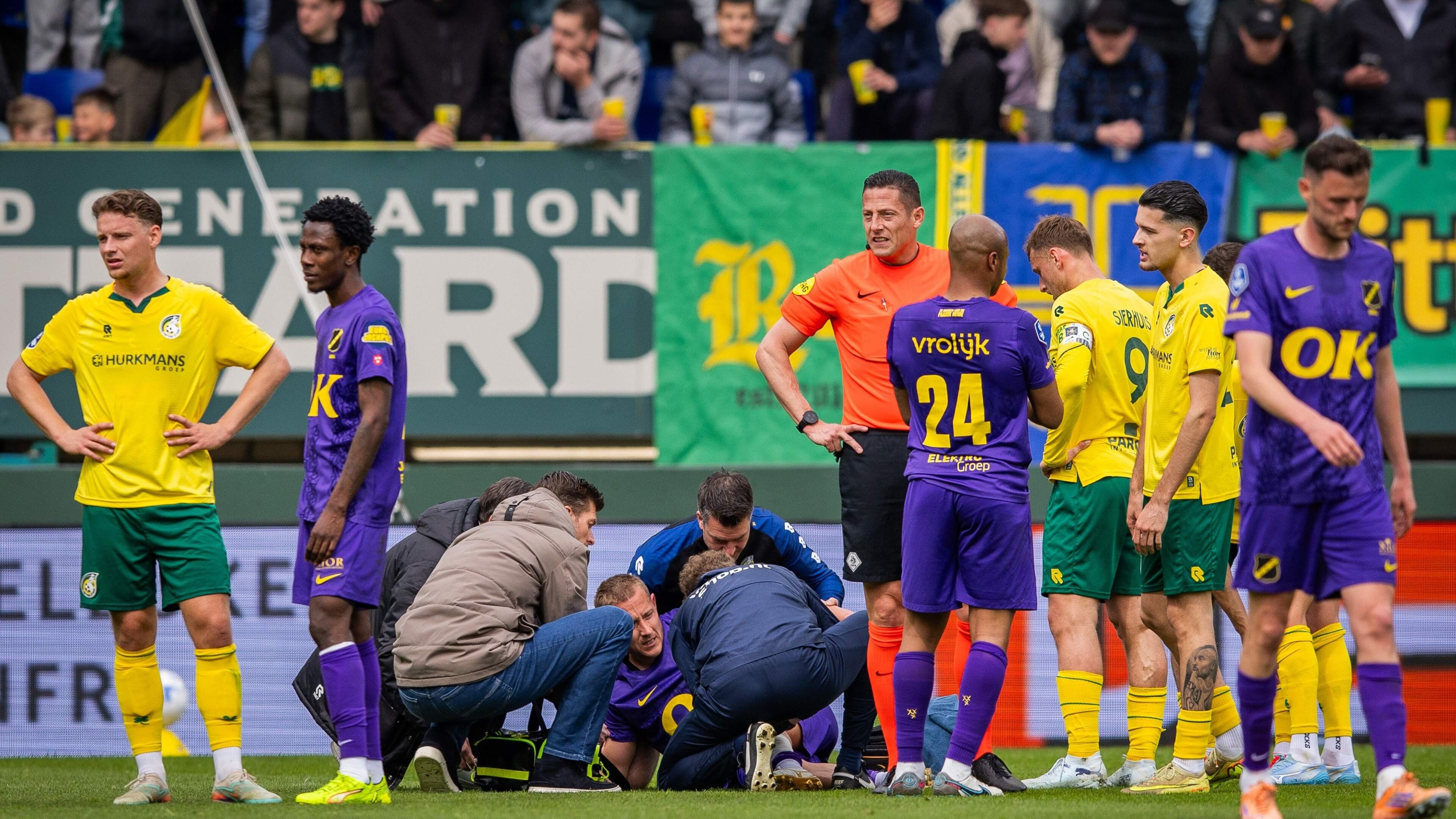 Niet voor de gevoelige kijkers: Lewis Holtby (NAC) loopt flinke vleeswond op na akelige botsing.